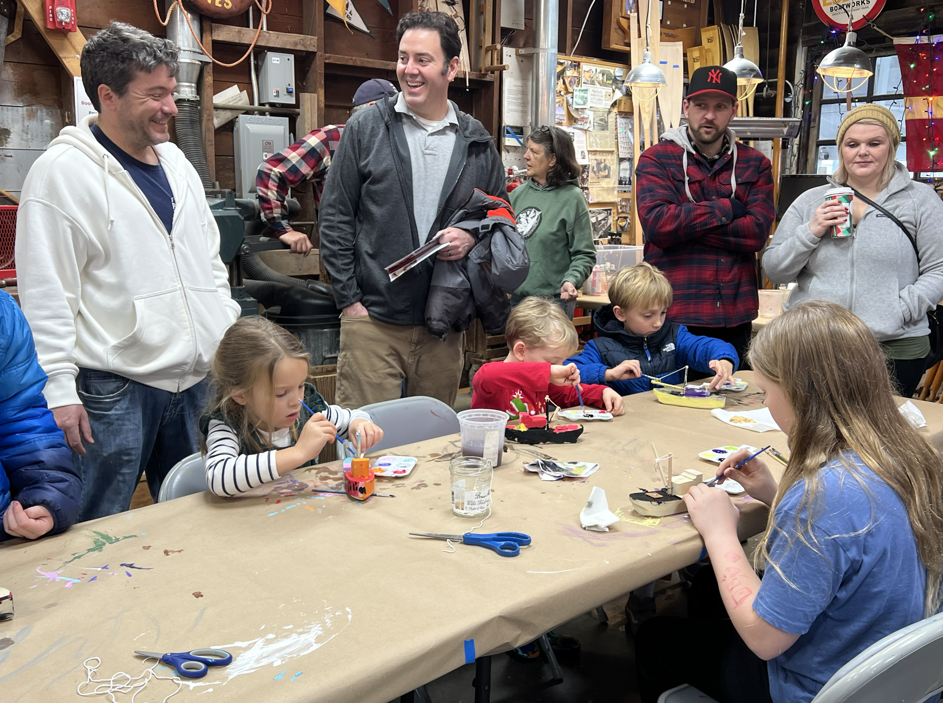 Children build and paint a wooden-toy version of a classic Gig Harbor workboat.