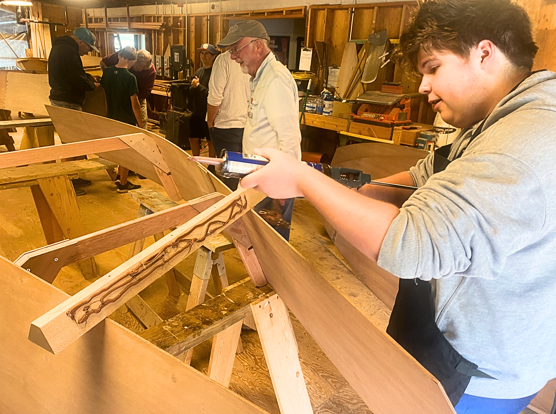 Adrian Gunter was an energetic and valued member of the first season of Gig Harbor BoatShop's teen summer camp program. In the boat shop, Adrian was curious and a kind and positive presence with his fellow participants. He was motivated to learn woodworking and boatbuilding techniques, demonstrating a strong ability to focus and work independently. Affable, funny, and enthusiastic, he was eager and willing to lend a hand to others. On the water, he used his experience to encourage his teammates in rowing, water safety, and collaboration. This culminated in a final program highlight: successfully navigating waves and currents while rowing an Eddon Wherry in tandem with a fellow camper to Point Defiance.